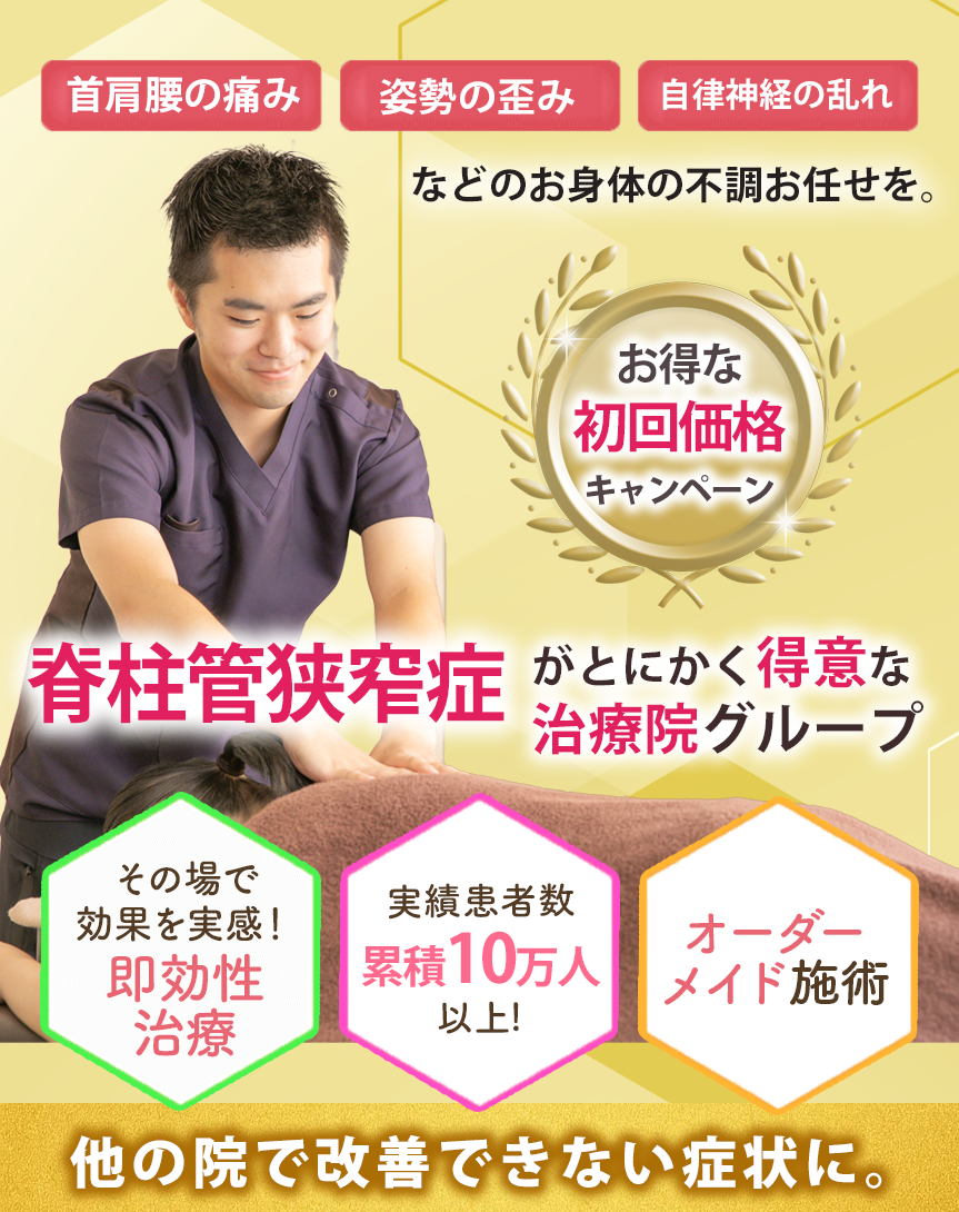 軽い症状の場合、整形外科や一般的な接骨院(整骨院)などで脊柱管狭窄症が改善される場合もありますが、実際には、